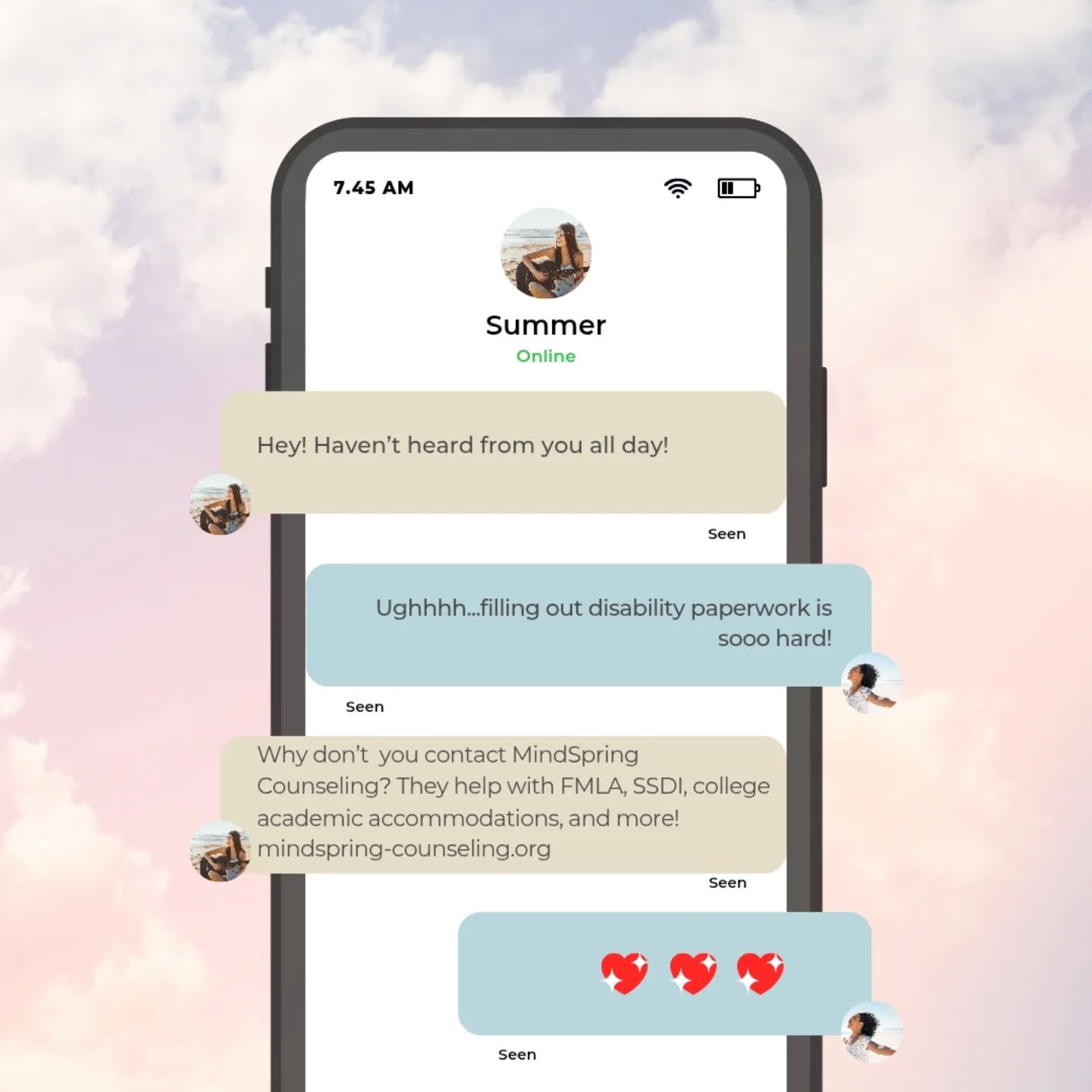 At MindSpring, we are dedicated to supporting you every step the way on your journey. Our wide range of services are designed to meet your unique needs and help you thrive. Whether you seek guidance, resources, or a listening ear, we are here to empower you to achieve your goals. Let us be your partner in this transformative experience.
