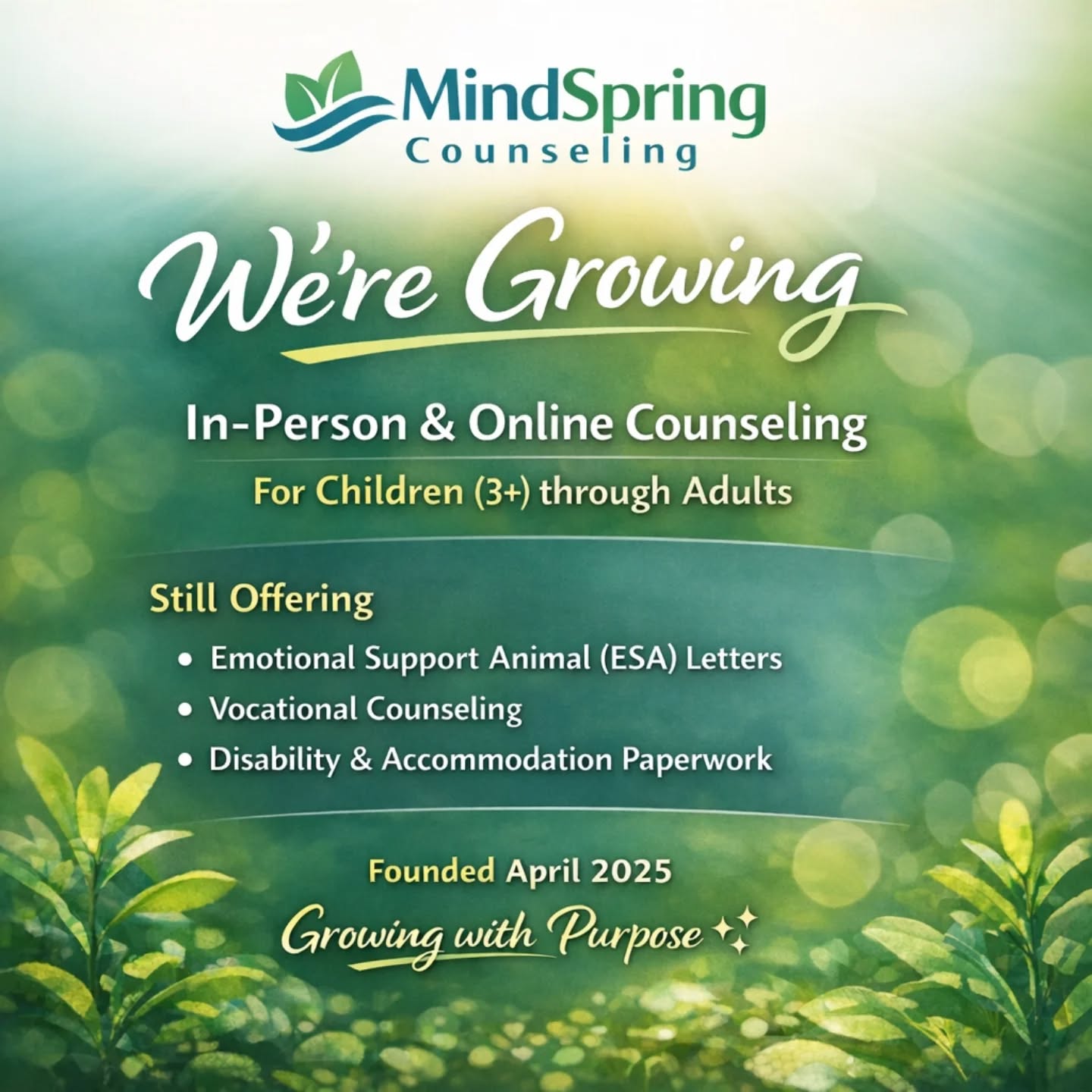 This growth reflects a deep commitment to serving individuals and families in more ways, with more flexibility, and with the same heart-centered approach that MindSpring was built on.